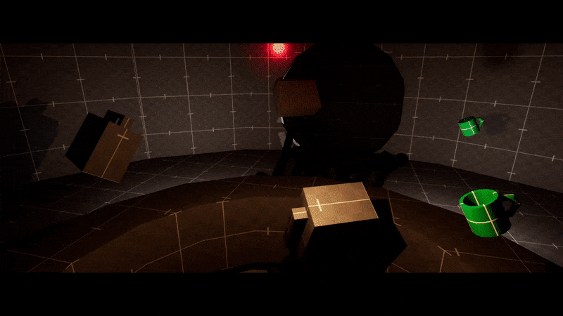 We also introduce a friendly character who acts as our guide through the later portions of the level. This aids our level design as we can communicate certain mechanics more explicitly without breaking immersion. How would the player know if they kept their flashlight on a dormant enemy they would wake up? A character and some helpful VO can help cross that gap.